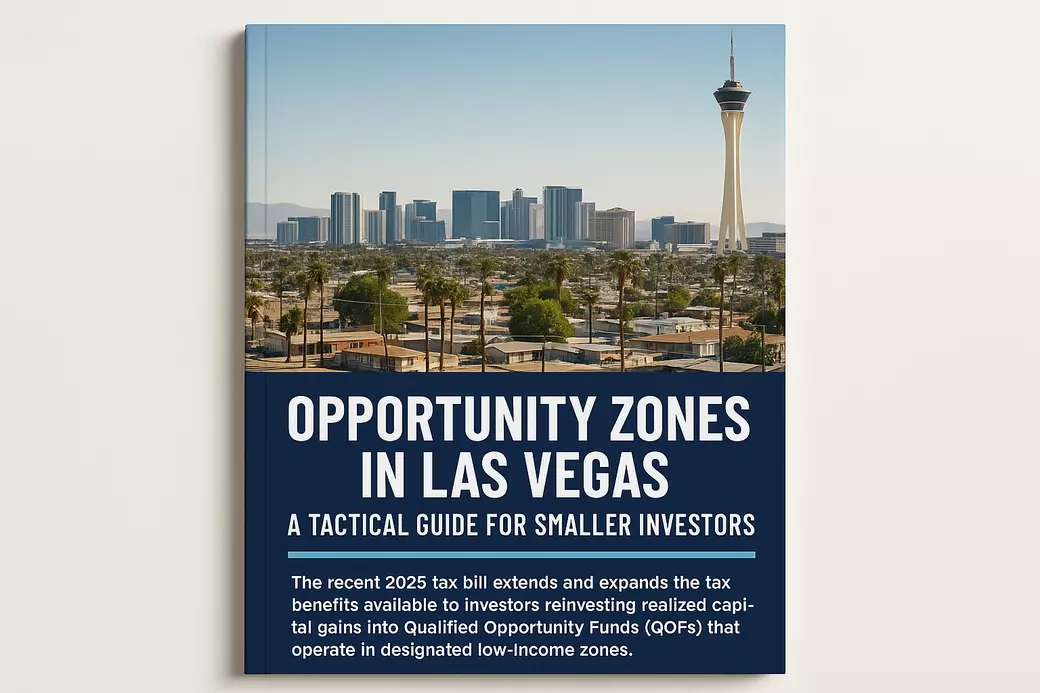 The 2025 tax bill has renewed interest in Opportunity Zones (OZs)—and Las Vegas is one of the best cities to take advantage. While big funds often dominate the headlines, smaller investors have unique pathways to benefit from massive tax savings and long-term wealth creation.