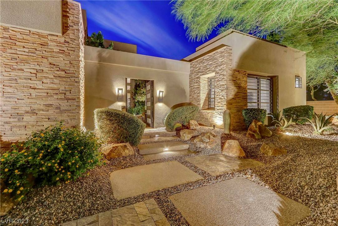 Breathtaking, custom Blue Heron home nestled amongst some of Las Vegas' most famous estates - this home offers single-story living w/multi-story views! Seamlessly blending indoor & outdoor living, Fleetwood pocket doors create a sense of continuity centered around the disappearing edge pool that merges w/the verdant foliage, the outdoor kitchen, & covered living room w/stacked stone fireplace & TV, providing a sanctuary from the bustling city. Inside, the chef's dream kitchen features Quartz counters, Viking SS appliances (incl. dbl ovens & warming drawer), B/I Miele, butler's pantry, & more! In the primary, immerse yourself in the ultimate indulgence w/direct access to the rim flow spa & fire feature. Spa-like primary bath w/”zero hardware” tub fill, dual floating vanities, & walk-through shower. Venture up to the rooftop deck & be mesmerized by panoramic views of the iconic Las Vegas Strip, while delighting in the spectacle of airplanes gracefully descending upon the horizon!